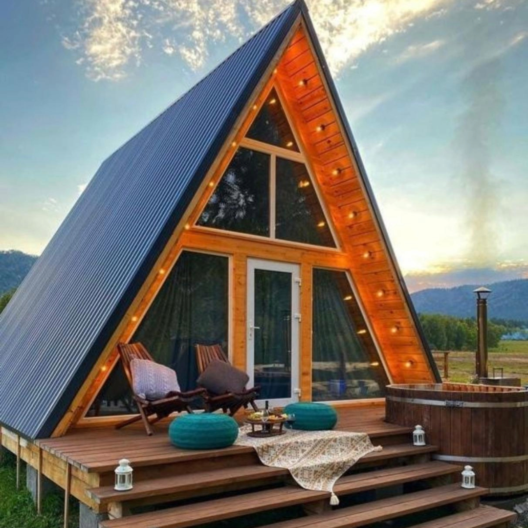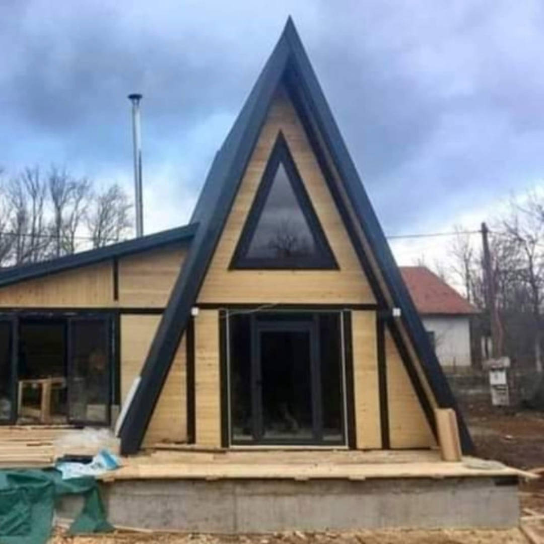 Spațiu interior: Designul acoperișului în formă de "A" oferă un interior spațios în partea superioară a casei. Această zonă este adesea folosită ca mansardă sau loft și poate fi amenajată ca dormitor suplimentar, birou sau spațiu de joacă.